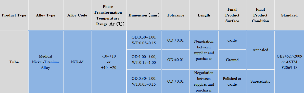 Superelastic nickel-titanium alloy fine tubes manufactured with an outer diameter from Φ0.30~Φ1.00mm, wall thickness from 0.05~0.20mm are now widely used for the preparation of medical instruments.
