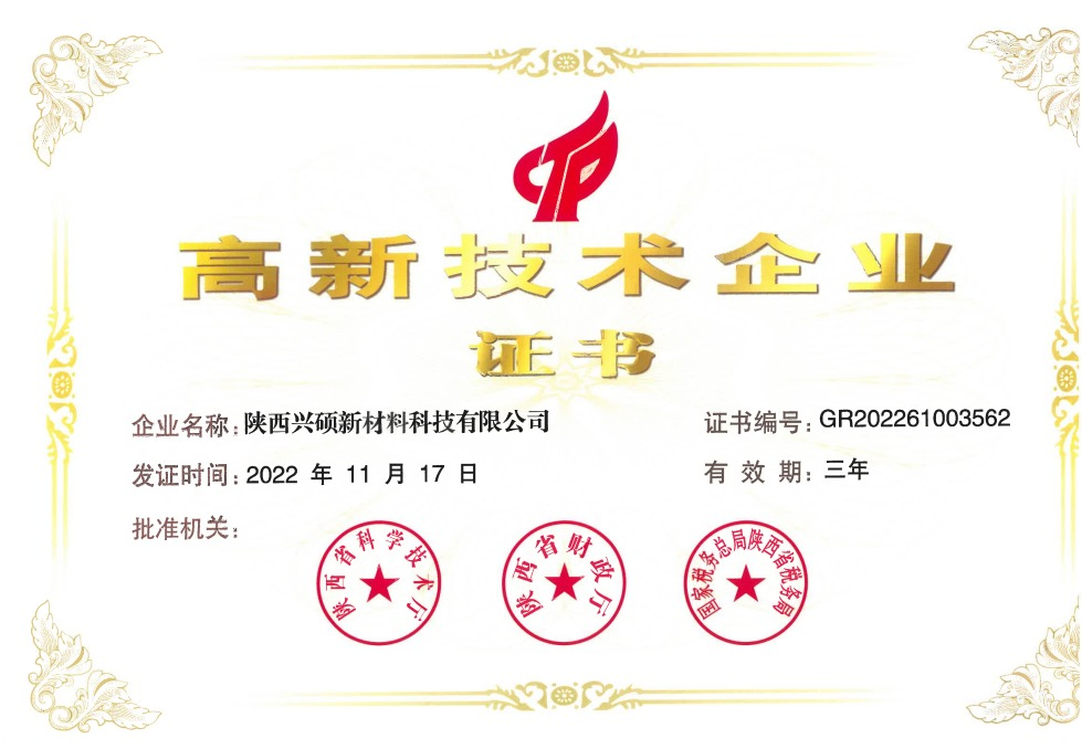 陕西兴硕新材料科技有限公司 地址:陕西省宝鸡市高新开发区高新十二路以西兴科路以南