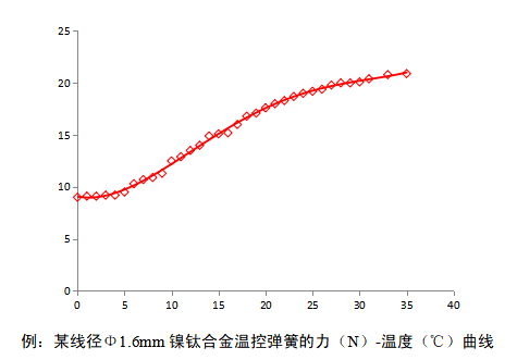 镍钛合金温控弹簧广泛地应用于温控阀芯中。在低温时,镍钛合金温控弹簧处于马氏体态,随着温度升高,马氏体转变为奥氏体产生的回复力可以用做驱动力。我们具有年产30万件镍钛合金温控弹簧的生产能力。镍钛合金温度弹簧的相变温度和回复力可以根据客户要求进行定制。